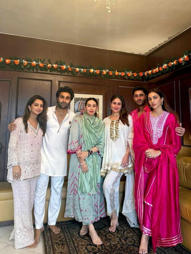 Alia Bhatt joins the festive fervour and glams up in a striking bright pink sari designed by Masaba Gupta.