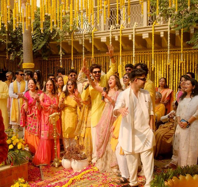 The colour of the day was yellow, as the siblings and their guests danced at Kritika's haldi ceremony.