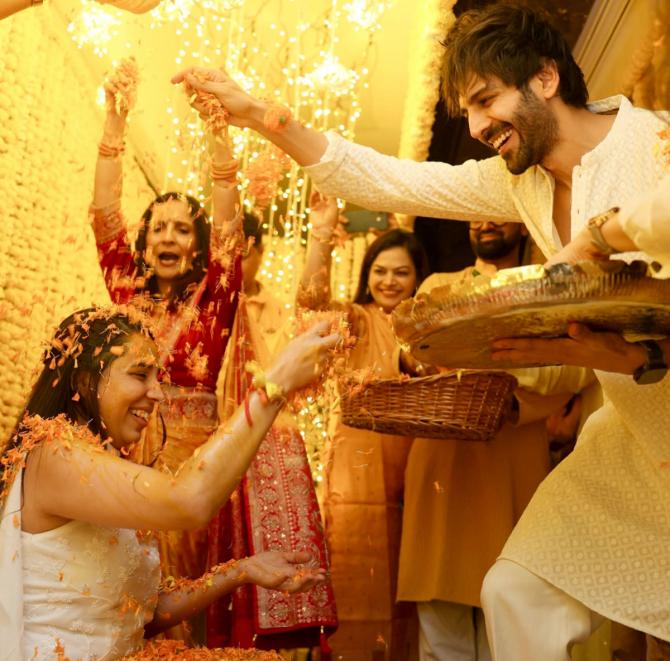 The wedding festivities for Kartik Aaryan's younger sister, Kritika Tiwari have begun in full swing in their hometown, Gwalior, Madhya Pradesh, on December 3.