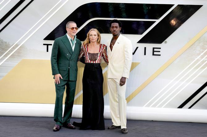 Brad Pitt with his co-stars, Kerry Condon and Damson Idris.