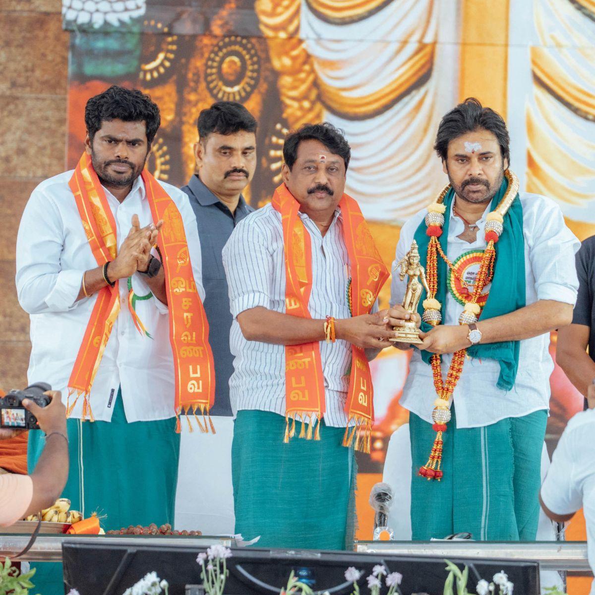 Joining state BJP leaders on the dais and speaking in defence of political Hindutva, rather than Hinduism as a religion or Muruga devotion as an ancient cult was actor-politician Pawan Kalyan, Andhra Pradesh deputy chief minister and Jana Sena Party founder.