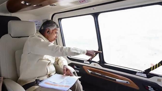 Naidu undertook an aerial survey of the cyclone-affected areas, which included Bapatla, Palnadu, Krishna, Konaseema and Eluru districts.