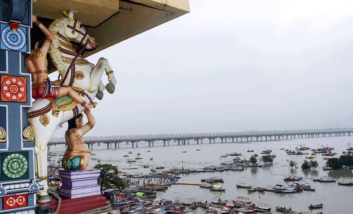 IMAGE: A view of a flooded area as the Ganga and Yamuna overflow in Prayagraj. Photograph: ANI Photo