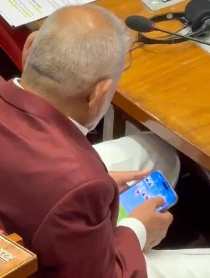 He was checking his phone when the Upper House of the state legislature was adjourned.
