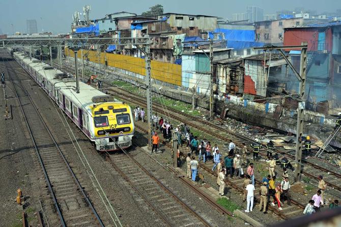"The electric supply to overhead equipment was disconnected as a safety measure due to the fire incident in the shanties adjacent to Up Harbour line on the east side between Mahim and Bandra", a Western Railway spokesperson said.