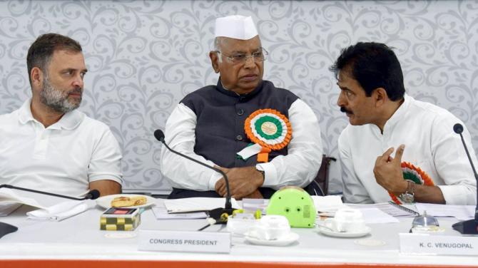 Kharge and Gandhi were joined by AICC general secretary (Organisation) K C Venugopal, party treasurer Ajay Maken and AICC Bihar in-charge Krishna Allavaru, sources said.