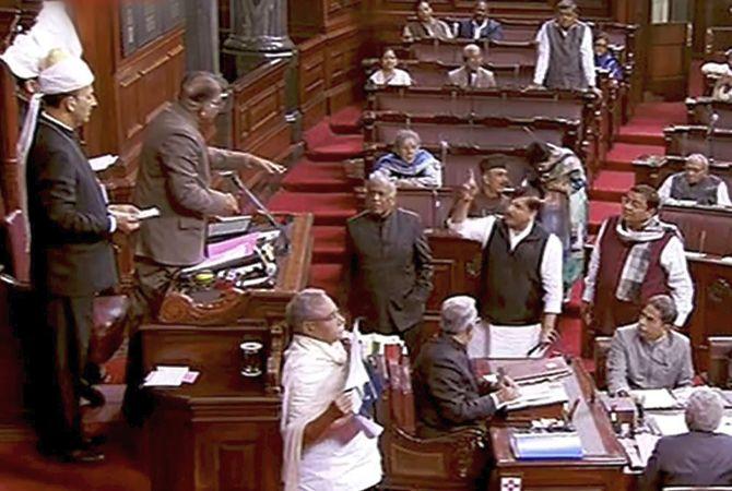 Soon after the House met for the day, Samajwadi Party members entered the Well raising slogans to protest against the violence in Kasganj. They were joined by the AAP members in the Well, forcing the Deputy Chairman P J Kurien to adjourn the proceedings.