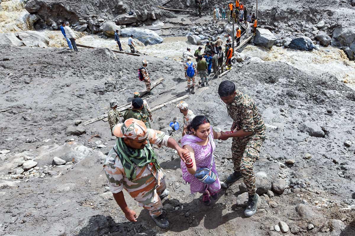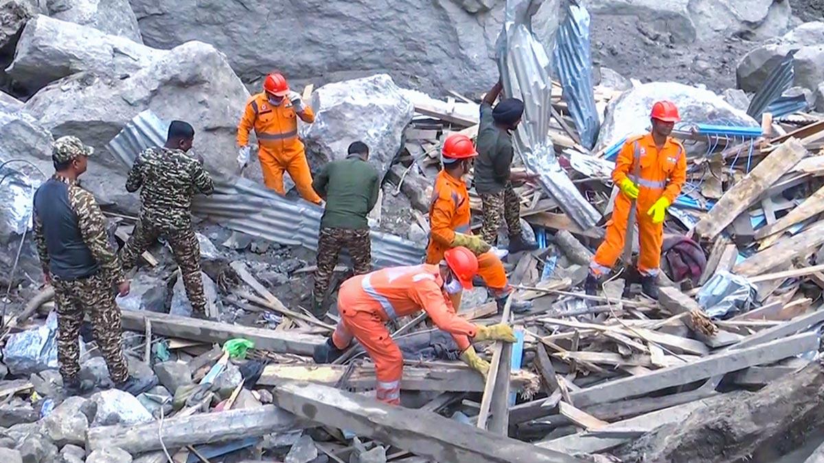 IMAGE: Indian Army, State Disaster Force, police and local administration carry out a search and rescue operation in flash flood-hit Chasoti in Kishtwar. Photograph: ANI Video Grab