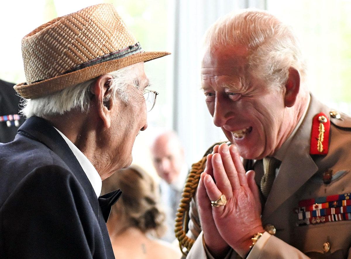 IMAGE: Britain's King Charles III speaks with Yavar Abbas of the Sikh Regiment, who fought World War II, at a reception for veterans and their families hosted by the Royal British Legion in Alrewas, Staffordshire. Photograph: Eddie Mulholland/Pool/Reuters