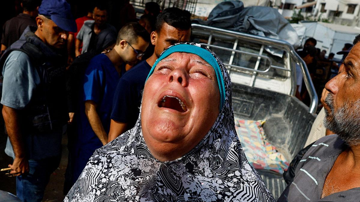 IMAGE: A mourner reacts during the funeral of Palestinians killed in Israeli attacks while seeking aid at the Al-Shifa Hospital in Gaza City. Photograph: Mahmoud Issa/Reuters