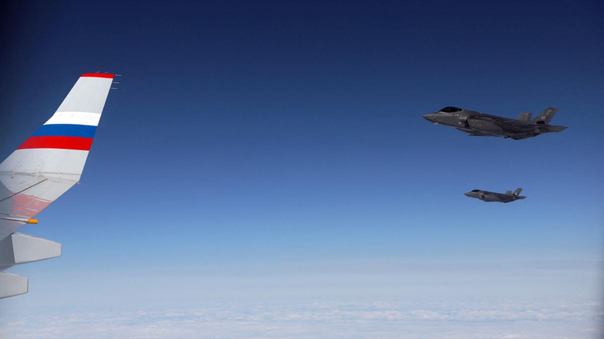 IMAGE: US fighter jets escort the Russian presidential aircraft after President Vladimir Putin left Alaska following his meeting with US President Donald John Trump, as seen from a plane porthole during a flight back to Russia. Photograph: Sputnik/Gavriil Grigorov/Pool/Reuters