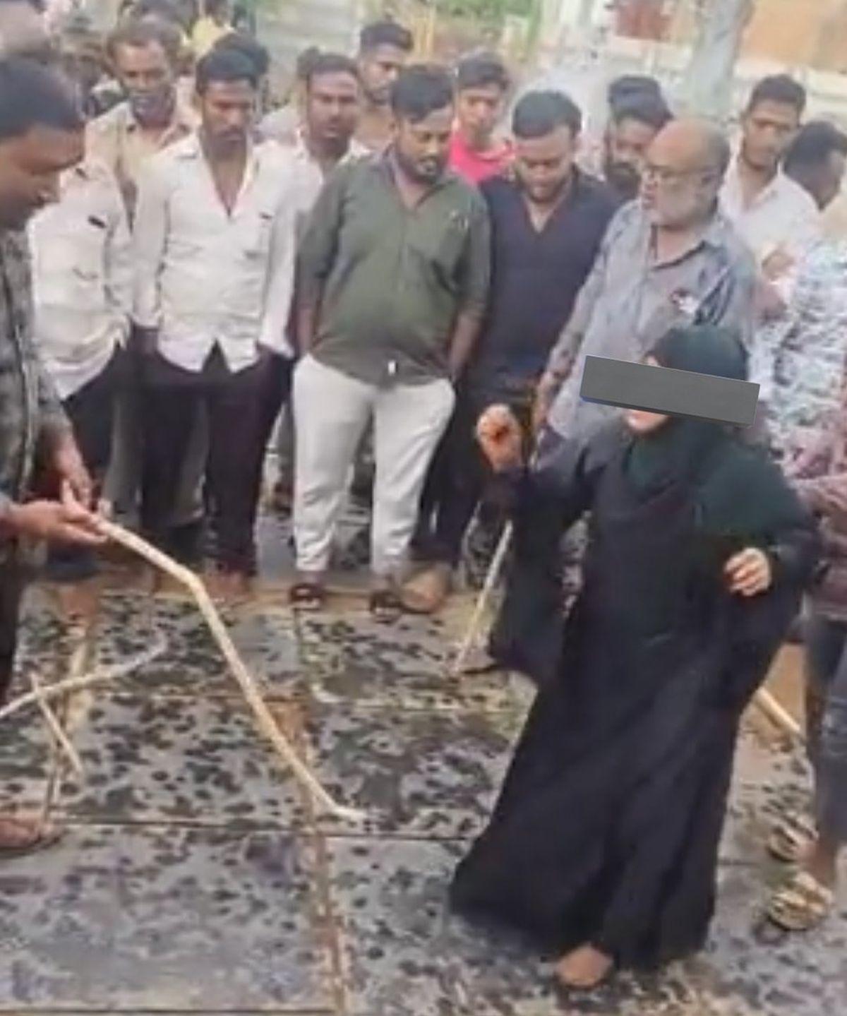 A 38-year-old married woman was brutally beaten up outside a mosque in Davanagere district in Karnataka by six men after her husband complained to mosque officials about the presence of another man in his house.