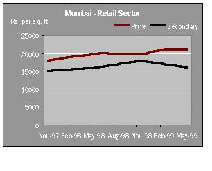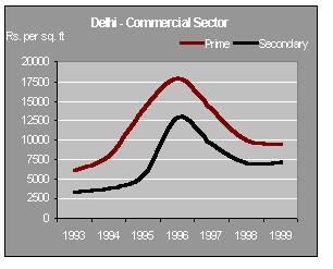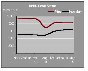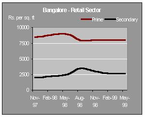 Retail and entertainment are the buzzwordsREAL ESTATE IN INDIA: WATCHING THE MARKETS PROPERTY MARKET With the economy finally showing positive indications, the property markets have started to stabilize. Most Housing Finance companies are providing attractive schemes like reducing interest rate, flexible payment facilities linked to the growth in income of the borrower. This coupled with increase in FDI and a positive stock market has resulted in increased activity in the real estate market. Although the prices continue to be low, there has been a renewed activity in all segments of the property market. With HUDCO entering the Housing Finance market, the competition has started hotting up. Housing finance cos. are concentrating on actual users and have devised schemes to suit their needs. Similarly, with regards to the commercial and retail markets there has been a significant change in the trends. With retail and entertainment becoming the buzzword and large corporates entering the fray this segment is all set to grow. However the ambiguity with regards to policy matters continues on account of the political uncertainty. Both state and central govt. are yet to come out with a clear policy on the following issues 1) FDI in housing 2) Core industry status for construction 3) Modification / repeal of the ULCRA by state governments. Now much would depend on the formation of a stable government and its ability to drive the economy. PRICES AND RENTS MUMBAIThere is a noticeable increase in the demand for residential and good quality commercial space. Although the prices of residential space continue to be soft, the volumes have improved compared to same quarter last year. Good commercial space in the suburbs of Andheri and Bandra now command rentals which are almost equal to that prevailing in secondary buildings in prime areas. OFFICE SECTOR In this sector there is a constant movement towards suburbs like Bandra-Kurla and Andheri (E). This has resulted in a rise in rental values in these locations. The rates prevail in the range of Rs 60-80 per sq ft per month with some premium building commanding as high as Rs 120. This is almost equal to rentals prevailing in CBDs like Nariman Point. However, the capital values in the suburbs have not moved in tandem with the lease rentals and have stabilized at 6000 to 7000 Rs/ sq ft.. The values in the prime CBDs haven't seen significant movements and have stabilized at Rs10000 to Rs15000 per sq ft.. The average rentals prevailing here are Rs 100 - 135 per sq. ft per month. RESIDENTIAL SECTOR The residential sector witnessed some positive activity. Prominent developers in Mumbai have reported increase in demand compared with the corresponding period last year. This increase can be attributed to an increase in demand for middle income housing projects. Most Housing finance companies have come out with various attractive schemes to suit the requirements of first time buyers. There has not been a significant change in other segments of the residential sector. The capital values in prime areas continued to be depressed and are prevailing in the range of Rs 9000-14000 and those in secondary areas prevail in the range of Rs.5000-8000. Studies have indicated that there is a potential demand for middle income housing projects that offer value for money. RETAIL SECTOR Retail worldwide has been the most profitable sector of the real estate industry. But in India this has not been the case. Its only now, with large Corporates venturing into the retail sector, that there has been a flurry of activity. There is a potential demand for large retail space in malls and other comprehensive developments. However there has not been any significant change in the retail market. The rentals in the prime and secondary areas continue to be around Rs 250 and Rs 200 per sq ft per month respectively. The capital values have now stabilized at Rs 21000 for primary area and Rs 16,000 for secondary area. DELHI Real estate prices in Delhi today are perhaps at the lowest in recent times. There are indications that suggest that the markets are bottoming out and now the prices and rentals would stabilize. OFFICE SECTOR Few corporates have shifted from the secondary locations to the CBD taking advantage of the falling rental values. There is increased activity in the CBD inspite of the factors like parking problem, poor maintenance of buildings & lack of power backup facility. There has been no significant change in the capital values of prime and secondary areas, which continue to be in the range of Rs 9000 - 10,000 per sq. ft. and Rs 6500 - 7500 per sq. ft respectively. On the other hand the lease market rates prevailed in the range of Rs 80 - 110 per sq. ft. per month and Rs 40 - 60 per sq. ft per month in prime and secondary areas respectively. RESIDENTIAL SECTOR In residential sector demand for premium leased space Rs 150,000 to 200,000 is still sluggish. However the lease market in the middle segment has seen good activity, the demand mainly coming from Embassy personnel, senior officials of MNC's and Indian corporates. There has been no change in the capital values in the prime & secondary areas which continue to be in the range of Re 5500 to 6300 and Rs 3500 to 4000 per sq. ft respectively. Same is the case with lease rentals. The rentals in prime and secondary areas continue to be Rs 40 - 50 and Rs 25-30 for prime and secondary areas respectively. RETAIL SECTOR The overall demand for leased and outright retail space in Delhi continues to be sluggish. Delhi retail market is characterized by acute shortage of quality retail space. In the absence of proper planning illegal constructions have prospered, leading to problems of parking space, water supply & electricity, at all major retail locations. Quite a few quality retail projects are in the pipeline. The capital values in the prime areas like Connaught Place, South Extension and Karol Bagh continue to be in the range of Rs 12000 - 1