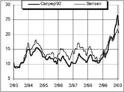 Besides, the fund has 6 per cent each in oil and gas and auto. The restructuring has significantly benefited the fund to gain 116 per cent and 36 per cent in the year and quarter ending February 2000. Canpep '92 is poised to deliver average performance and will benefit to some extent from the change in market sentiment in favour of its quality portfolio.