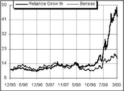 Reliance Growth Fund has given an annualised return of 38.6 per cent since its launch with a large part of the gains being in the calendar 1999, when it was up 198 per cent. Launched in September 1995, when the markets were in a strong bear grip, the fund for long had a sizeable allocation to debt. The strategy worked well in its favour enabling it to comfortably weather the bearish phase dipping far less than the markets. But, this resulted in the fund trailing the indices during the rising markets. The fund has gradually increased its equity exposure from a low of 35 per cent in March 1998 to 76 per cent in September 1998 and is almost fully invested in equities now. The portfolio of the fund has over 90 stocks spread widely across sectors. It had a mere 16 per cent of its corpus in software till November 1999. Hence, despite the good performance figures, the fund has lagged behind its aggressive peers. However over the past quarter, the fund has significantly increased its exposure in infotech sector with a 40 per cent weightage. But the fund has aggressive positions in relatively unheard of infotech stocks. It also has positions in pharma (8.8%), consumer non-durables (4.2%), diversified (5.5%) and shipping (4.7%). Based on its current portfolio, Reliance Growth Fund is a high-risk, high-reward fund. The fund will gain significantly if the current boom is sustained. However, in case of a market downturn, the fund could get hurt badly. The fund is suited for investors seeking a short-term boom ride.