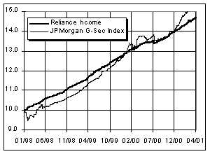Besides credit and liquidity concerns, movement of interest rates plays an important part in a debt fund’s performance. With bonds moving inversely with the changes in interest rates, the fund has sought to minimise this risk by staying at the lower end of the maturity spectrum. Thus, the maturity profile ranged between 2.5-3.5 years in a volatile 2000. With this strategy the fund has offered a return of 12.18 % against a category average of 12.15% for the two years ended April 20, 2001.