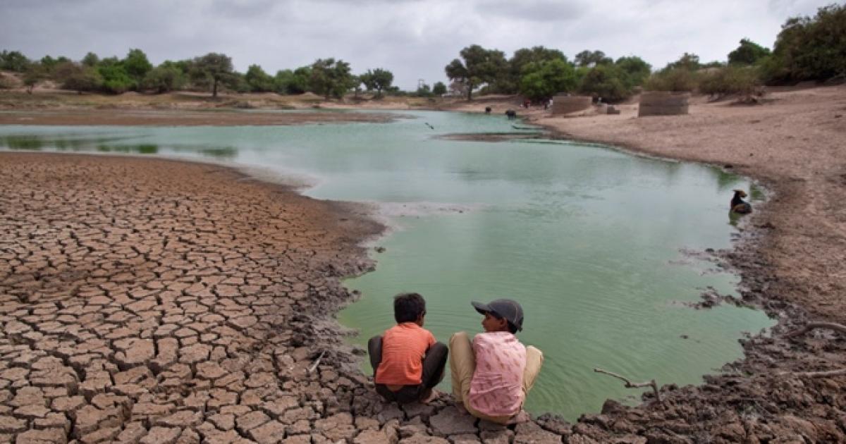 Image: Children wash their hands in a partially dried-out natural pond at Badarganj village in Gujarat. Photograph: Ahmad Masood/Reuters