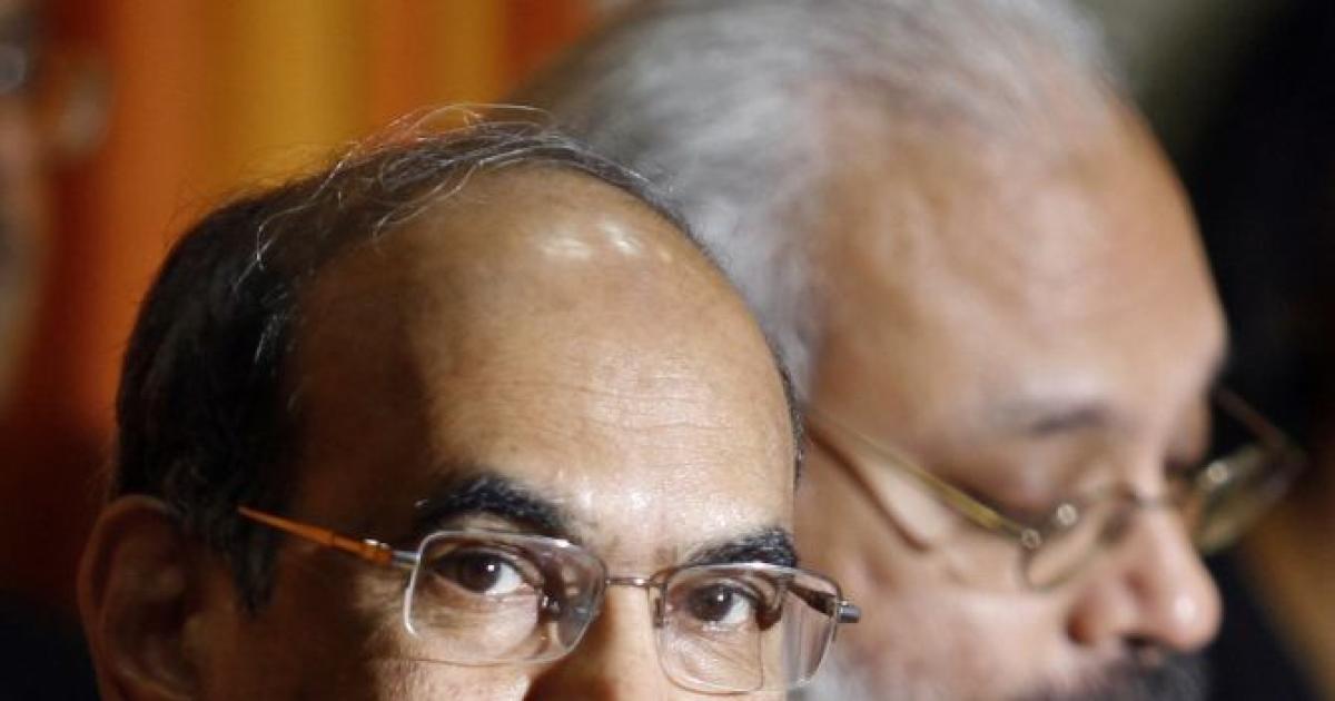 IMAGE: Reserve Bank of India Governor Duvvuri Subbarao (L) next to deputy Governor Subir Gokarn prior to a meeting with bankers before announcing the annual monetary policy at the head office in Mumbai on April 20, 2010. Photograph: Arko Datta/Reuters
