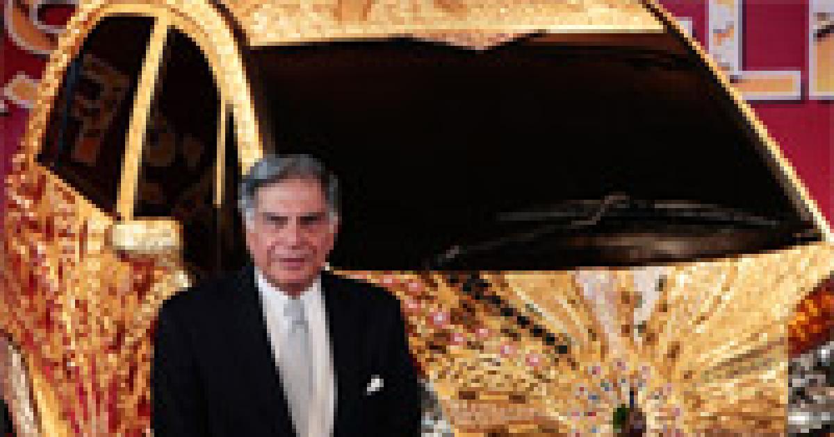Image: Ratan Tata with a Nano car made of gold in Mumbai last year. Photograph: Danish Siddiqui/Reuters