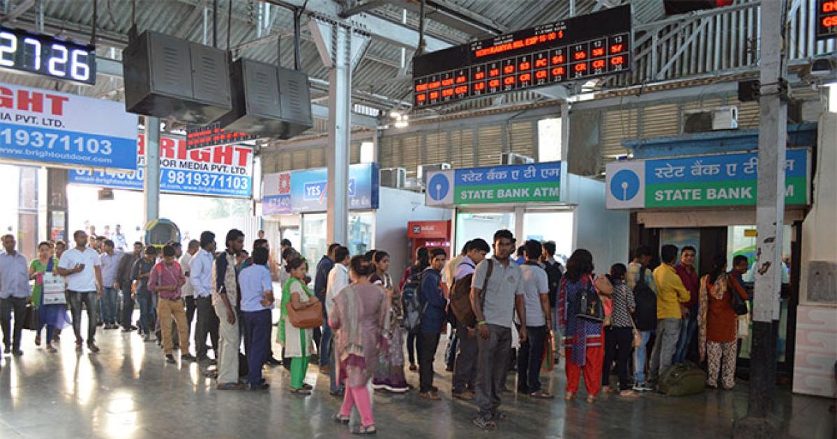 IMAGE: The direct impact of demonetisation is wastage of time and productivity as people stood in queues outside cash vending machines and banks. Photograph: Sahil Salvi