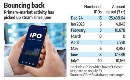 July shaped up to be the busiest month for IPOs, with nearly a dozen companies raising over ₹10,000 crore.