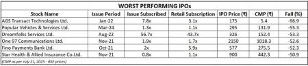 While their subscription levels ranged from 0.8x (Star Health) to 56.7x (DreamFolks), their share prices have tumbled between 51 per cent and 53.5 per cent over their issue prices.