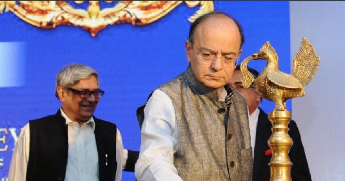 Image: Finance Minister Arun Jaitley lights the traditional lamp to mark the inauguration of gold options trading in the country. Photograph: Courtesy, Jaitley's Twitter page.