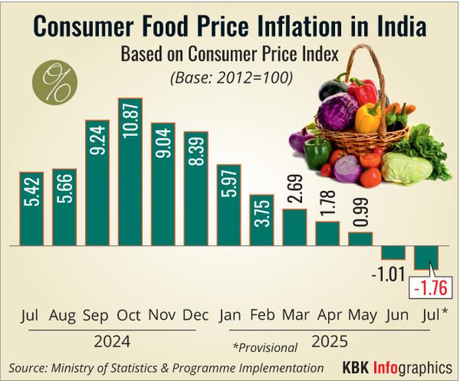 The year-on-year food inflation rate in July was (-) 1.76 per cent.