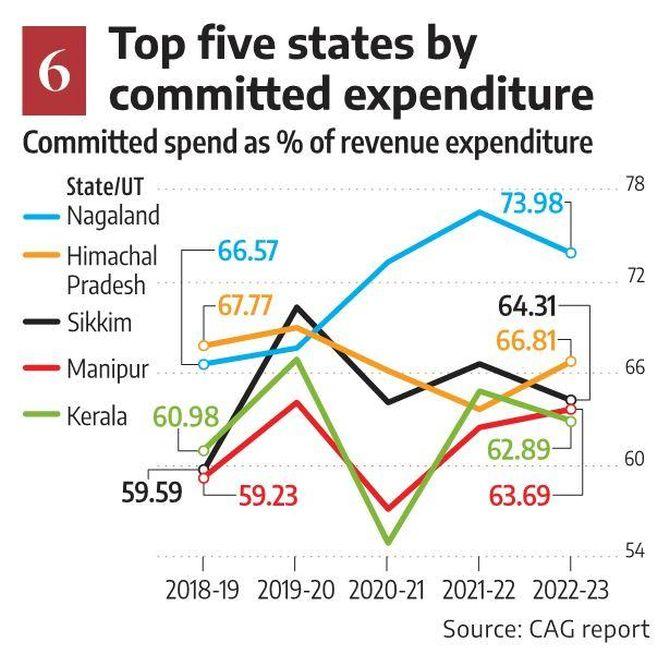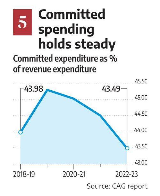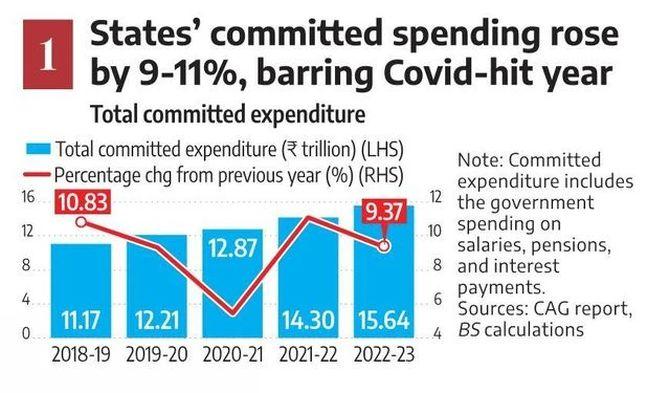 As much as 43 per cent of revenue expenditure of states went to committed spend, which also includes salaries that year, according to a report by the Comptroller and Auditor General of India.