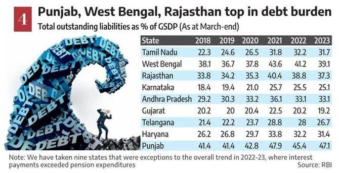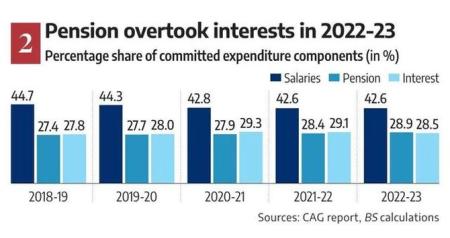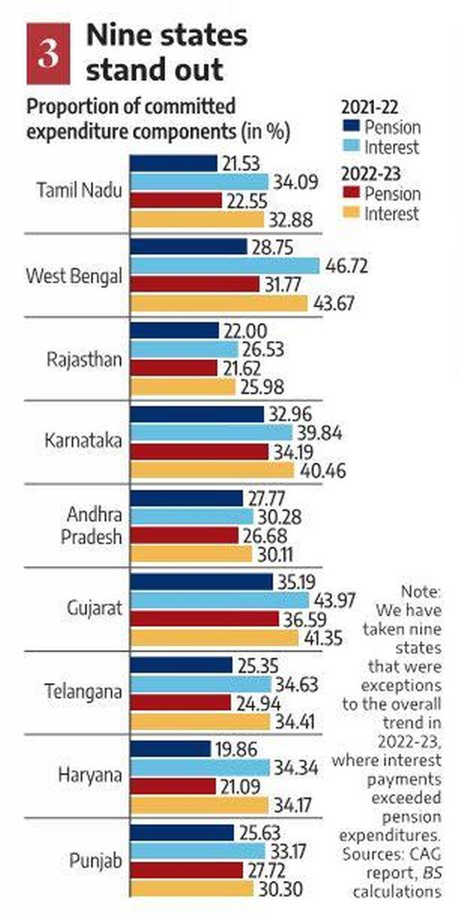 Amid a debate on three variants of the pension system -- old, new and unified -- total payments of states under this head exceeded interest outgo for the first time in at least five years in 2022-2023.
