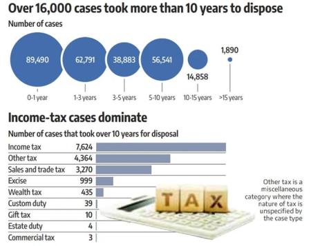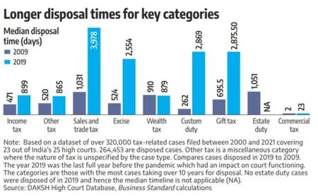 From 2009 to 2019 -- the last year before the pandemic-induced disruption -- the median time for disposal was up over 90 per cent for income tax cases, and a massive 200-400 per cent for sales and trade tax, and excise duty cases.