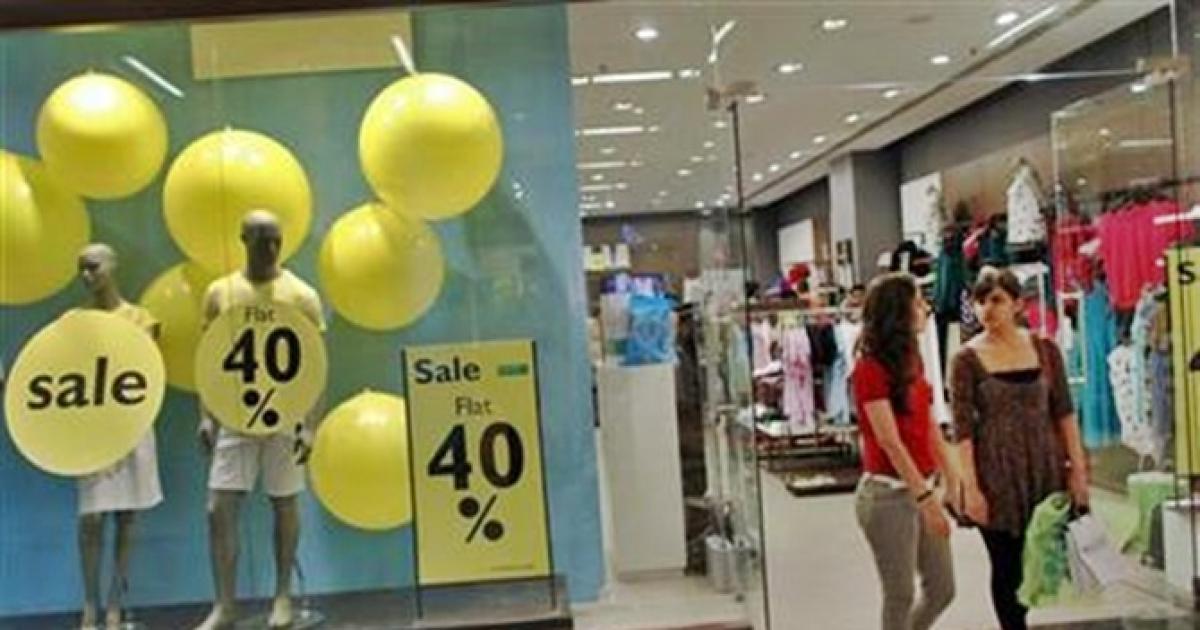 Image: File photograph of a retail store inside a shopping mall announcing discounts. Photograph: Danish Siddiqui/Reuters.