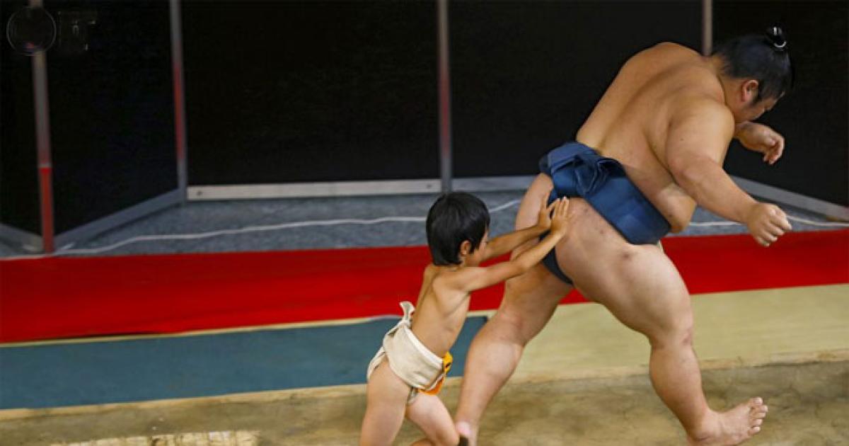 David versus Goliath could have been the theme of 2015, when business giants were humbled by smaller challengers. Image: A boy pushes a sumo wrestler out of the ring in a mock competition. Photograph: Thomas Peter/Reuters.