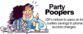 This is estimated to bring down the cost of their operations by at least 15 per cent. But are they willing to pass on this windfall to their clients? No way! The Department of Telecommunications is the government owned basic telephony service provider for all of India except the metros of Bombay and New Delhi. In those two high teledensity cities, it is another government owned corporation that rings the phones, the Mahanagar Telephone Nigam Limited. Both will now stop charging the ISPs the steep Rs 15,000 per line. But the ISPs are going to hog it all and there is no Internet tariff reduction in immediate sight. Actually, the Internet Services Providers Association of India Secretary Amitabh Singhal is quite apologetic. "The ISPs should pass on the benefits to their customers." Satyam Infoway General Manager T Ravichandran defends "We have taken a calculated risk and already passed down the benefits to our customers, foreseeing this drop (in phone charges)." Incidentally, Satyam Infoway was the most vociferous critic of the high phone charges that DoT and MTNL were charging because Satyam is a large nationwide ISP needing several phone lines. Obviously, they were the worst hit. Dishnet Limited Director, Marketing, Prakash Arya seconds Satyam's Ravichandran. "We have not included these charges (the Rs 15,000 telephone tariff) in our current rates. No further drop (in our Internet tariff) is planned. We were sure the high phone charges were going to be dropped." Weikfield Mnemonix Director Vikram Godse is a man of few words. He claims "Our customers benefit because we have the lowest rates in India." Period! The MTNL is a strange bird. The basic telephony provider is also an ISP. Its telephone arm has to provide lines to its ISP arm. There is no question of it paying Rs 15,000 to itself. However, if Mr Speedy Gonsalves is jumping to the conclusion that MTNL's ISP business must be immune to the recent developments, let him be warned. Actually, the decision to not charge Rs 15,000 per line from ISPs works against MTNL in two ways:
