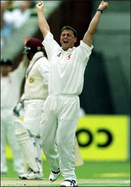 Cornhill Test - Day 1GOUGH GOT EM: Darren Gough exults after bagging the wicket of Sherwin Campbell on the first day of the England - West Indies third Cornhill Test at Old Trafford, Manchester on Thursday. The bowler went on to bag the prized scalp of Brian Lara later.Michael Steele/ALLSPORT NEXT |