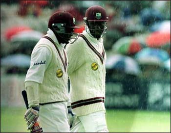 Cornhill Test - Day 1RAIN RELIEF: Wavell Hinds and Brian Lara get a respite from the English bowlers as rain halts play with the score 27 for 2.Laurence Griffiths/ALLSPORT BACK NEXT |
