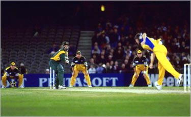 The Super Challenge 2000Gary on Kirsten! Opener Gary Kirsten defied the deadly Aussie attack but was dismissed when one short of a fifty.Sean Garnsworthy/ALLSPORT BACK NEXT |