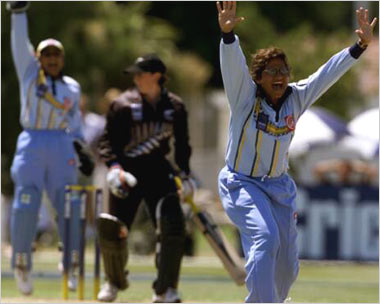 India vs New ZealandThe Kiwi bowlers had the Indian batswomen in big trouble and anyone who saw the difficulty the Indians played with, would have expected the same from the New Zealanders. However, it was not to be.Scott Barbour/ALLSPORT |