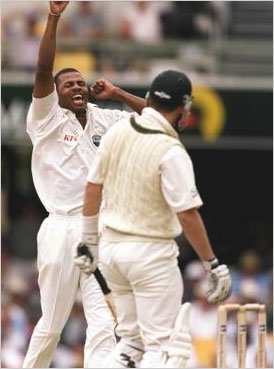 Mervyn Dillon in an belligerent mood against Australia.