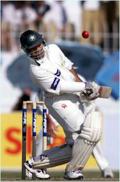 Pakistan opener Saeed Anwar avoids a bouncer from Darren Gough on the first day of the 2nd Test at the Iqbal Stadium in Faisalabad, Pakistan.
