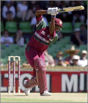 Brian Lara of the West Indies drives through mid off during his innings of 78 not out.
