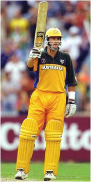 Mark Waugh acknowledges his excellent century.