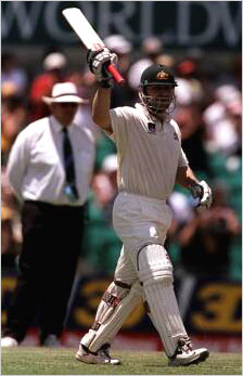 Slater slaughteringThen Slater took over. But in a manner very different from what he is normally accustomed to. Rather than go all out and attack the bowling in his usual uninhibited style, he played an innings of rare composure.David Pillinger/ALLSPORT |