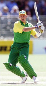 Shane Lee of Australia A pulls through mid-wicket during his innings of 30.