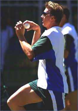 Brett Lee of Australia bowls in the nets, during training at the Melbourne Cricket Ground, Melbourne, Australia.