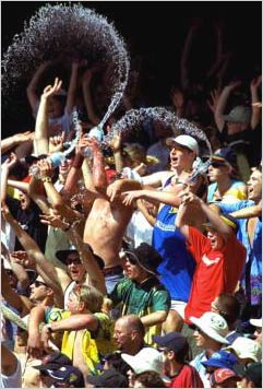 A noisy crowd at the MCG does the Mexican wave during the Australian innings.