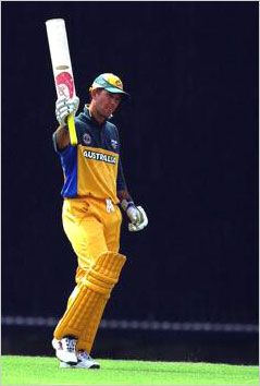 Ricky Ponting acknowledges the applause of the crowd after reaching his 50.