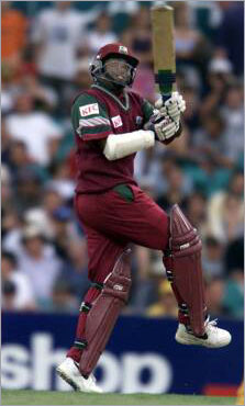 Brian Lara of the West Indies pulls through mid-wicket as he blasts the Australian attack.