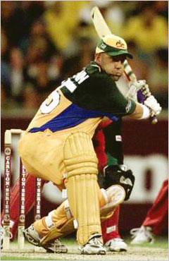 Zimbabwe vs AustraliaDarren Lehmann (Aus) prepares to hit out. Lehmann has been in and out of the Aussie side which shows the kind of depth the Aussies possess right now. He came out to open and stayed there right till the end scoring a fine 92.Hamish Blair/ALLSPORT |
