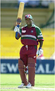 Brian Lara reaches his 50 after being dropped dropped twice.